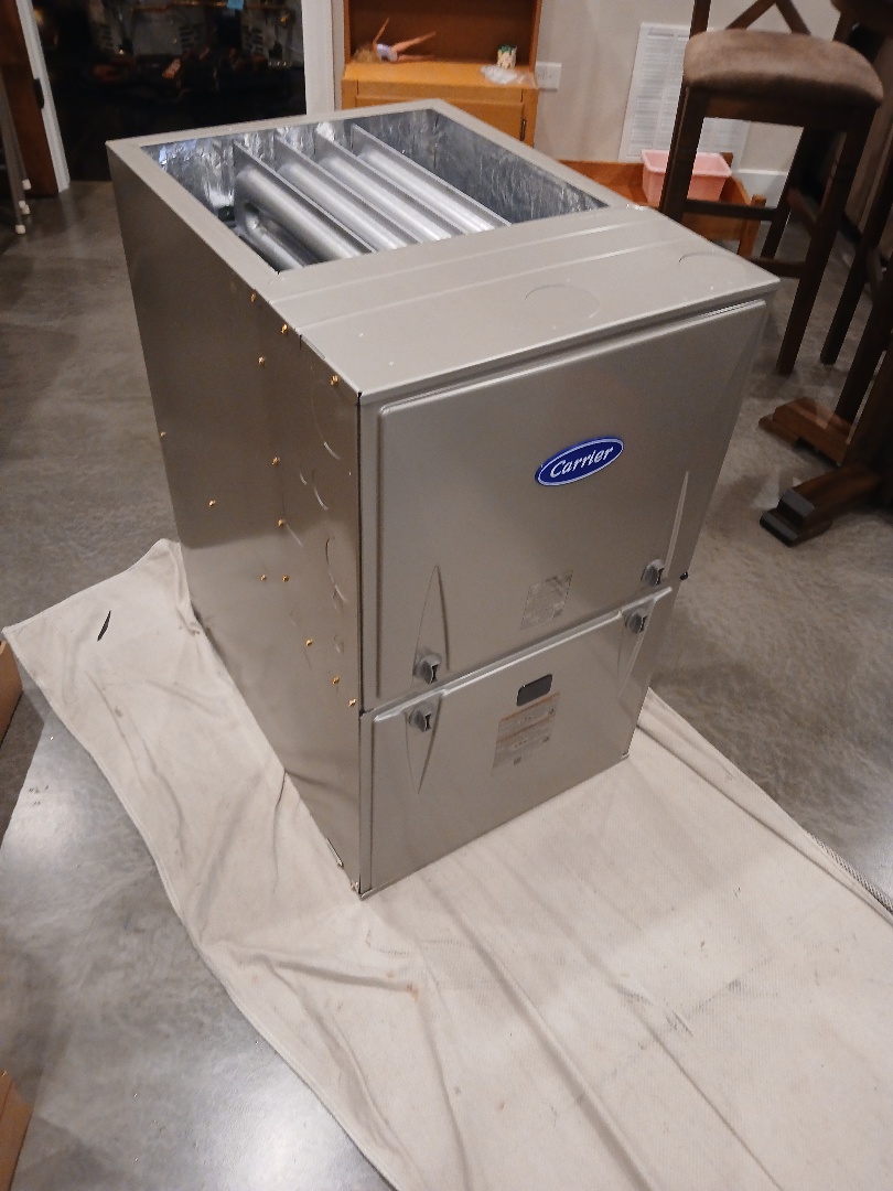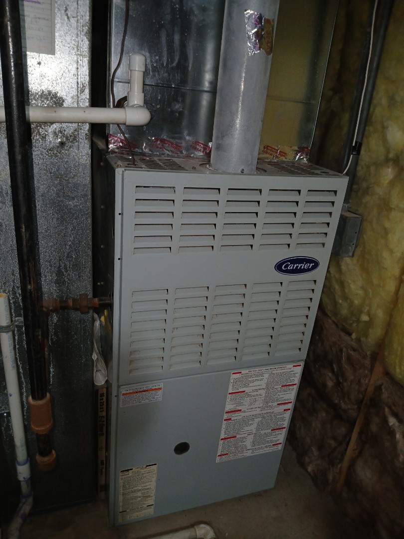 Furnace maintenance being done on a Carrier furnace under our Comfort Club Silver Plan.